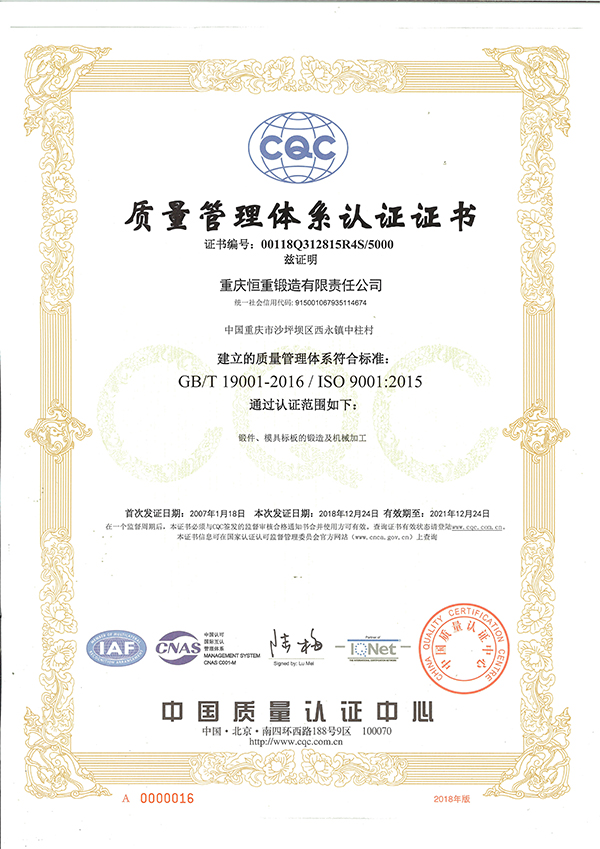 質(zhì)量管理體系認(rèn)證證書2018版